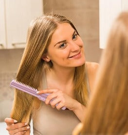 Mini Plancha De Pelo Recargable 2en1 Cepillo y Rizador Morada